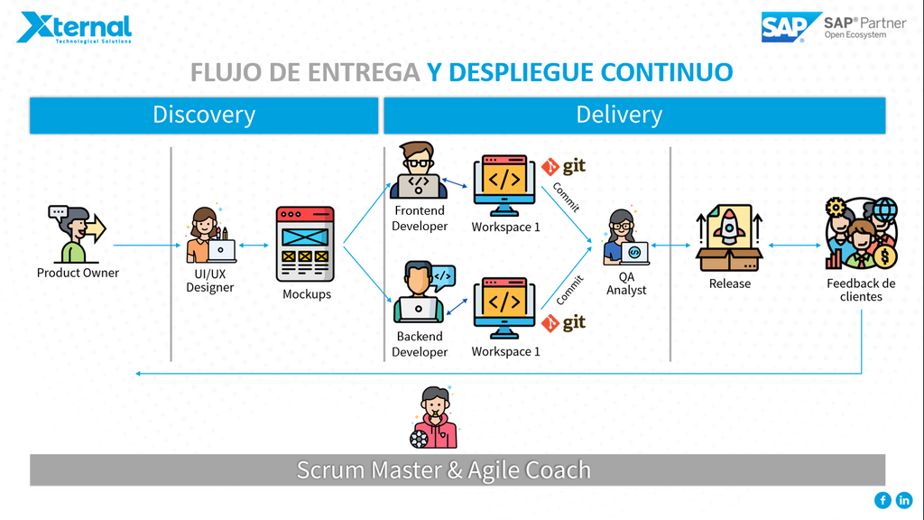 Nuestro flujo de trabajo sigue un enfoque ágil y colaborativo, asegurando la entrega de soluciones eficientes y alineadas con las necesidades del cliente.