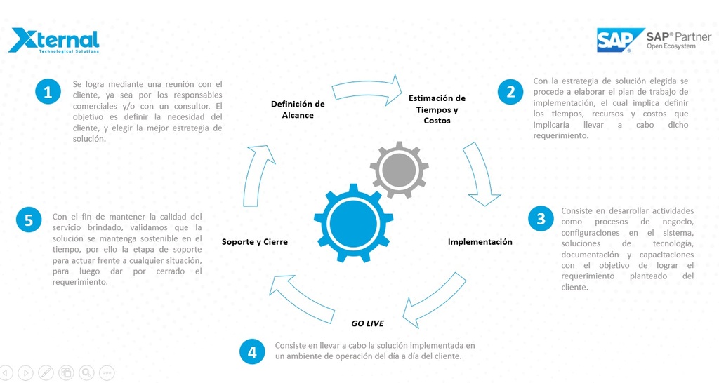 Nuestro flujo de trabajo sigue un enfoque ágil y colaborativo, asegurando la entrega de soluciones eficientes y alineadas con las necesidades del cliente.